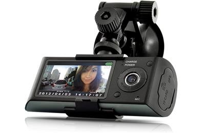 Kameraet har 2 linser og kan ta opp veien forran deg og bakover inne i bilen.